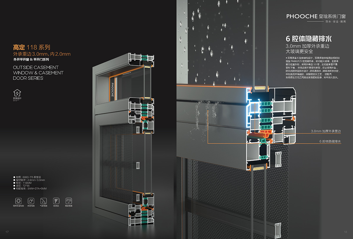 Hidden drainage and 6 waterproof processes, high standard windproof system, truly achieving the function of windows